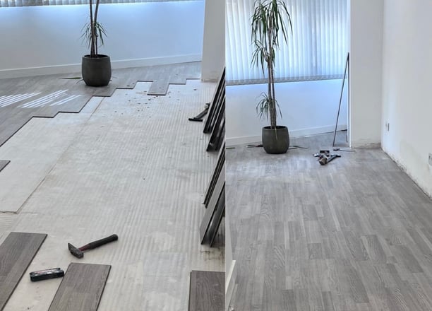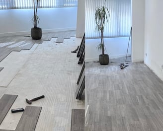 Retiramos el suelo antiguo y lo reemplazamos con tarima nueva de alta calidad, asegurando un acabado perfecto.